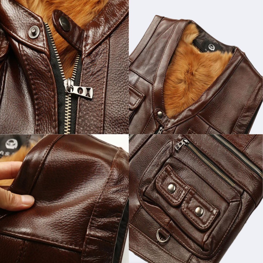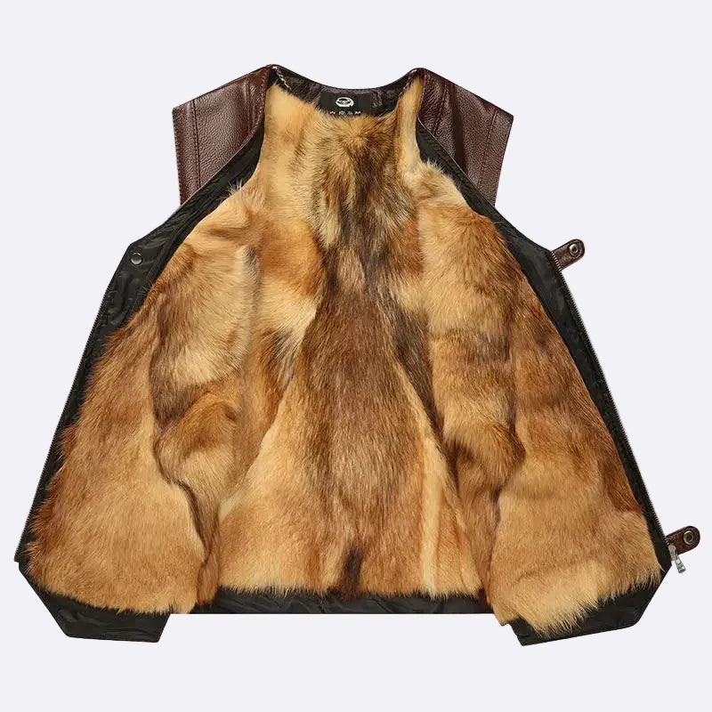 Men's warm vest made of genuine leather
